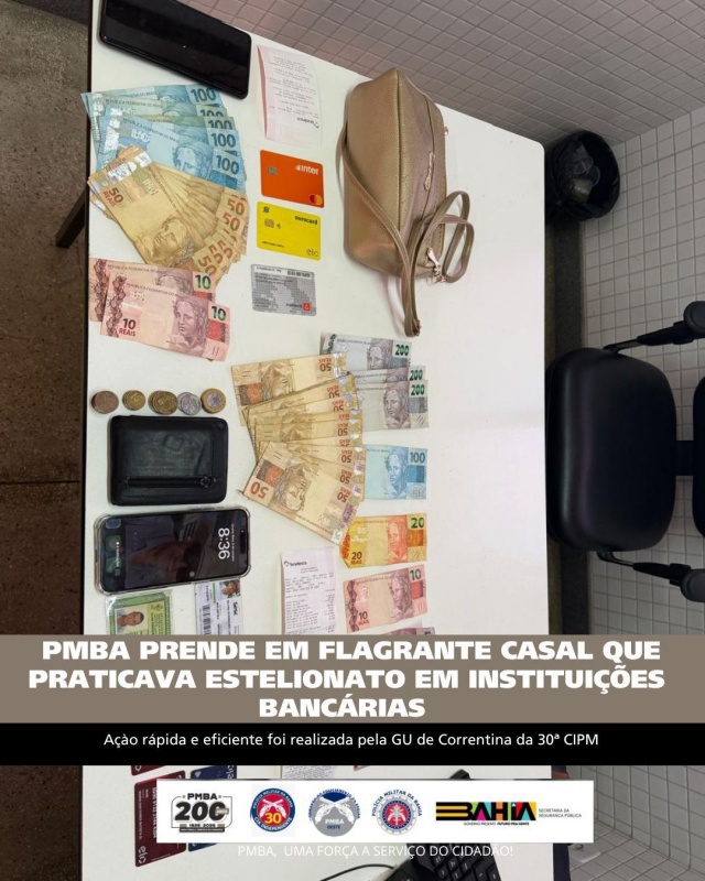 Por volta das 08h00min Desta quarta-feira (08), a Guarnição de Serviço da cidade de Correntina foi informada de que um casal estaria praticando estelionato na agência bancária localizada na Rua Benjamim Constant, Centro, neste município.