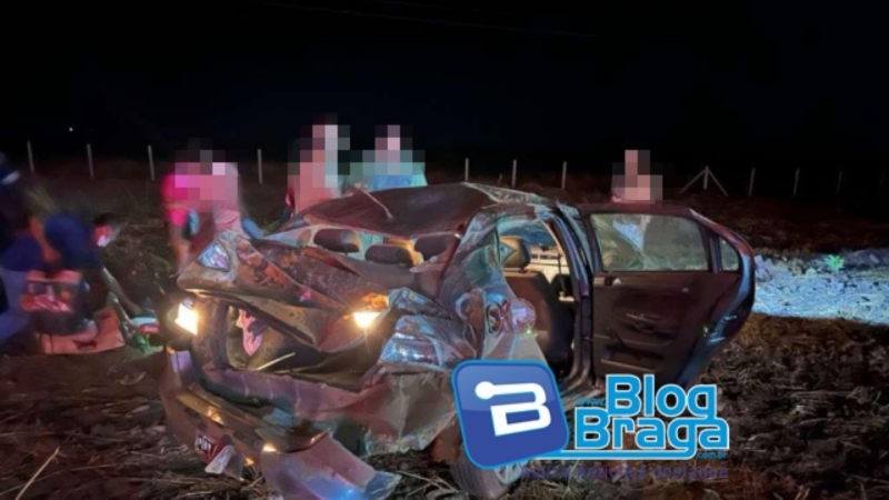 LEM: Capotamento deixa três pessoas da mesma família feridas na BR/020 próximo ao Distrito Novo Paraná